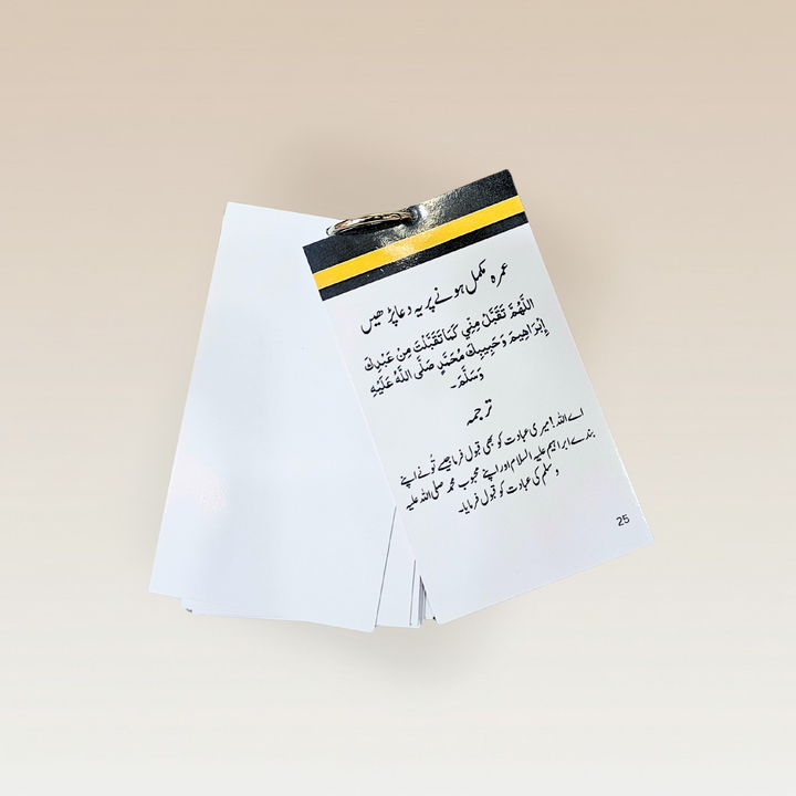 Introducing the Umrah Duas Pocket Cards, a digital print set of 25 dua cards designed to guide you through your Umrah journey. These pocket-sized cards feature essential duas for Umrah, serving as a convenient Umrah guide and flashcards. Perfect for travelers, these pocket cards are a valuable resource for reciting important prayers during Umrah. Whether you're a seasoned pilgrim or embarking on your first Umrah, these dua cards are a must-have companion for a spiritually fulfilling experience. The tone of voice is in accordance with Informative. No amendments needed