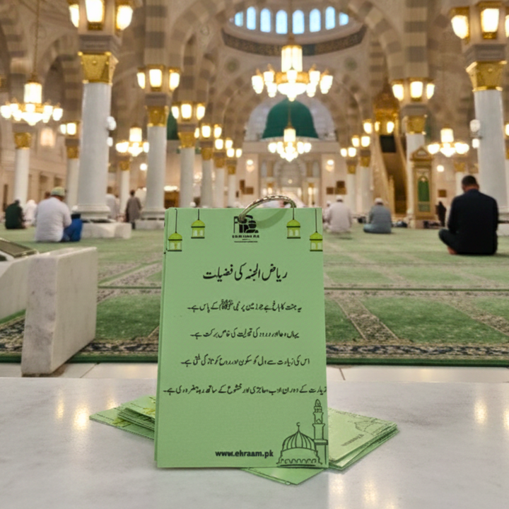 - Made to help you stay spiritually connected while sitting in Riyaz ul Jannah